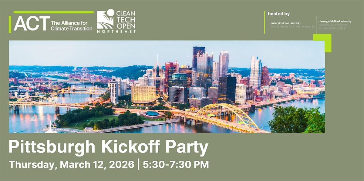 Come join Cleantech Open Northeast for an evening of food, drink, celebration and opportunity at The Swartz Center for Entrepreneurship at Carnegie Mellon University (CMU) in Pittsburgh, PA! This event will be co-hosted by CMU's Swartz Center for Entrepreneurship and the Scott Institute for Energy Innovation.