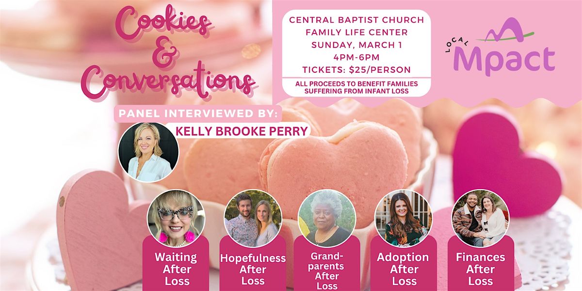 Cookies and Conversations will be held at Central Baptist Church in the Family Life Center. A panel discussion will take place to bring awareness to infant loss through various topics. Event will be led by Kelly Brooke Perry, a co-host of Arkansas' Morning Show with Brandon & Kelly. This is an educational event, discussing resources, all while having a wonderful time of fellowship with friends. Cookies from local businesses will be served. Casual event. Open to the public. Men and women welcomed and encouraged. Attendees will enter through the right side of the church, in the back entrance of the Family Life Center. A sign will be outside of the door. All proceeds to benefit families suffering from infant loss.