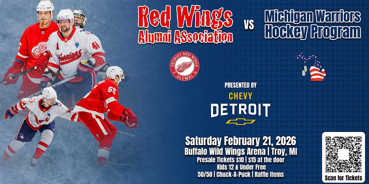 Join us for an exciting night of hockey as Red Wings Alumni take the ice in support of the Michigan Warriors Hockey Program. Proudly presented by Chevy Detroit.