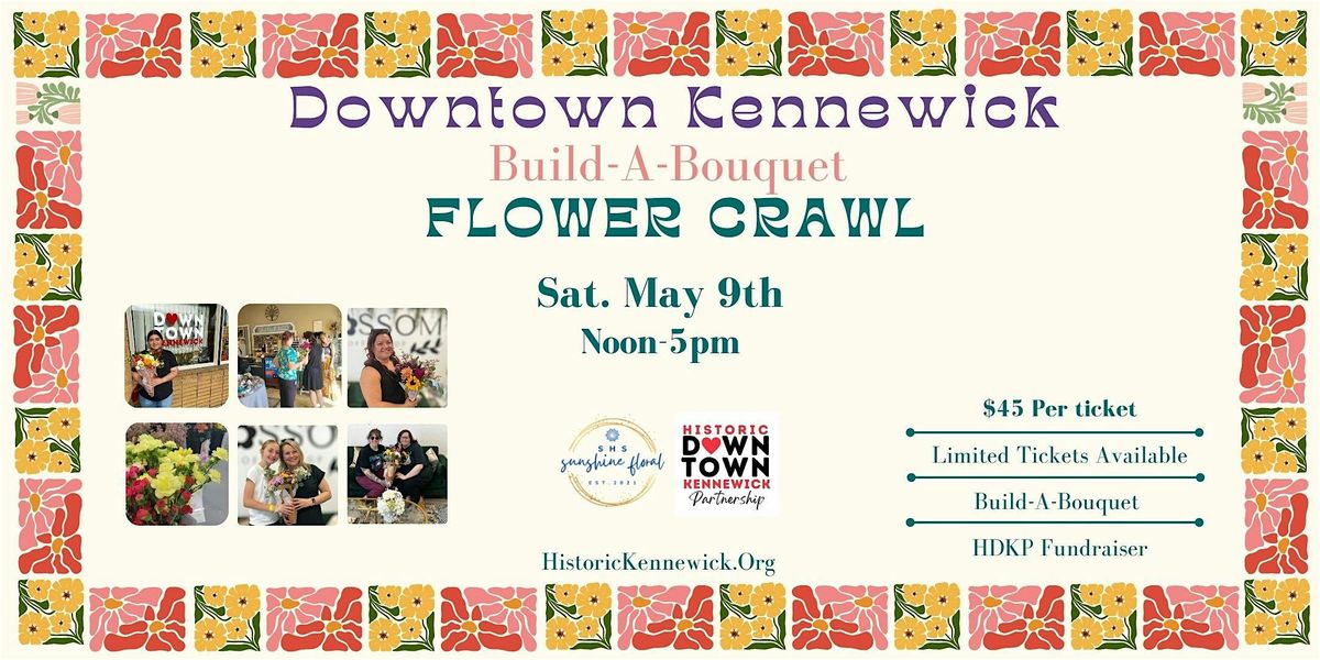 Spend the day with us to meander through a variety of Locally Owned Businesses as you Build-A-Bouquet with the Downtown Kennewick Flower Crawl.