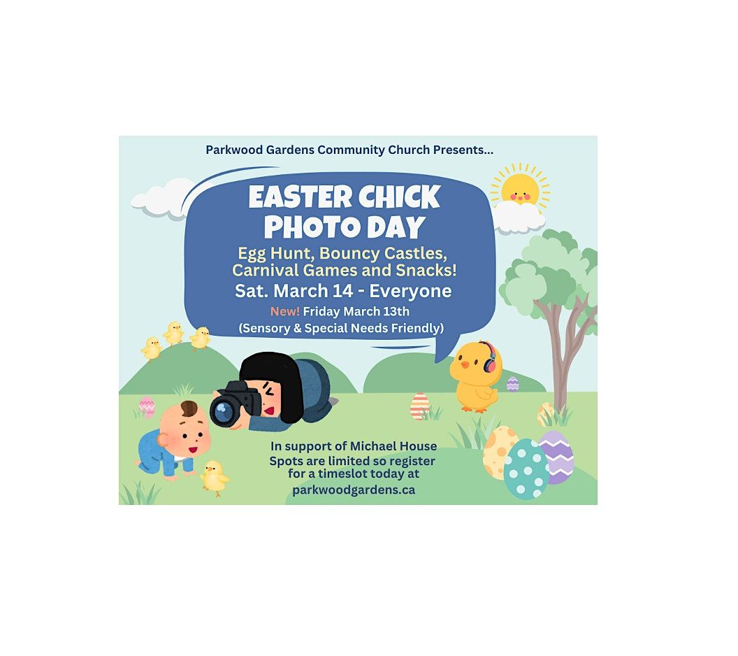 Friday evening will be available for families with Special Needs only. The Friday will be a quieter event with Chick photos and Egg Hunt only. (No noisy Gym Carnival) It is our hope that this option will make this activity more accessible for those with sensory and special needs children.