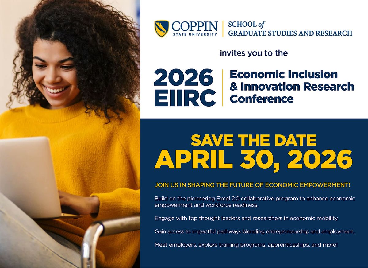 The 2026 Economic Inclusion & Innovation Research Conference (EIIRC) will unite students, educators, researchers, business leaders, and policymakers for a full day of research presentations, dialogue, and action. Building on past success, EIIRC 2026 broadens its scope to include innovative research that drives economic growth.