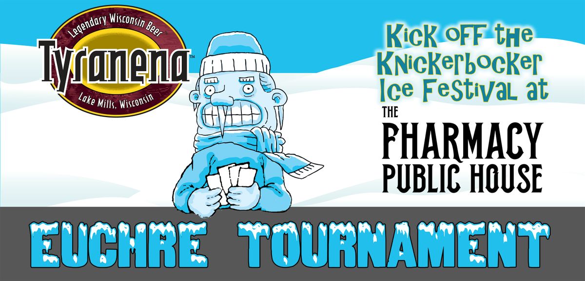 Kick off Lake Mills' 2026 Knickerbocker Ice Festival with a Euchre Tournament at Tyranena's The Fharmacy Public House (203 N. Main Street). The first 60 people to register, can play. No partner necessary; players will rotate tables and teammates.