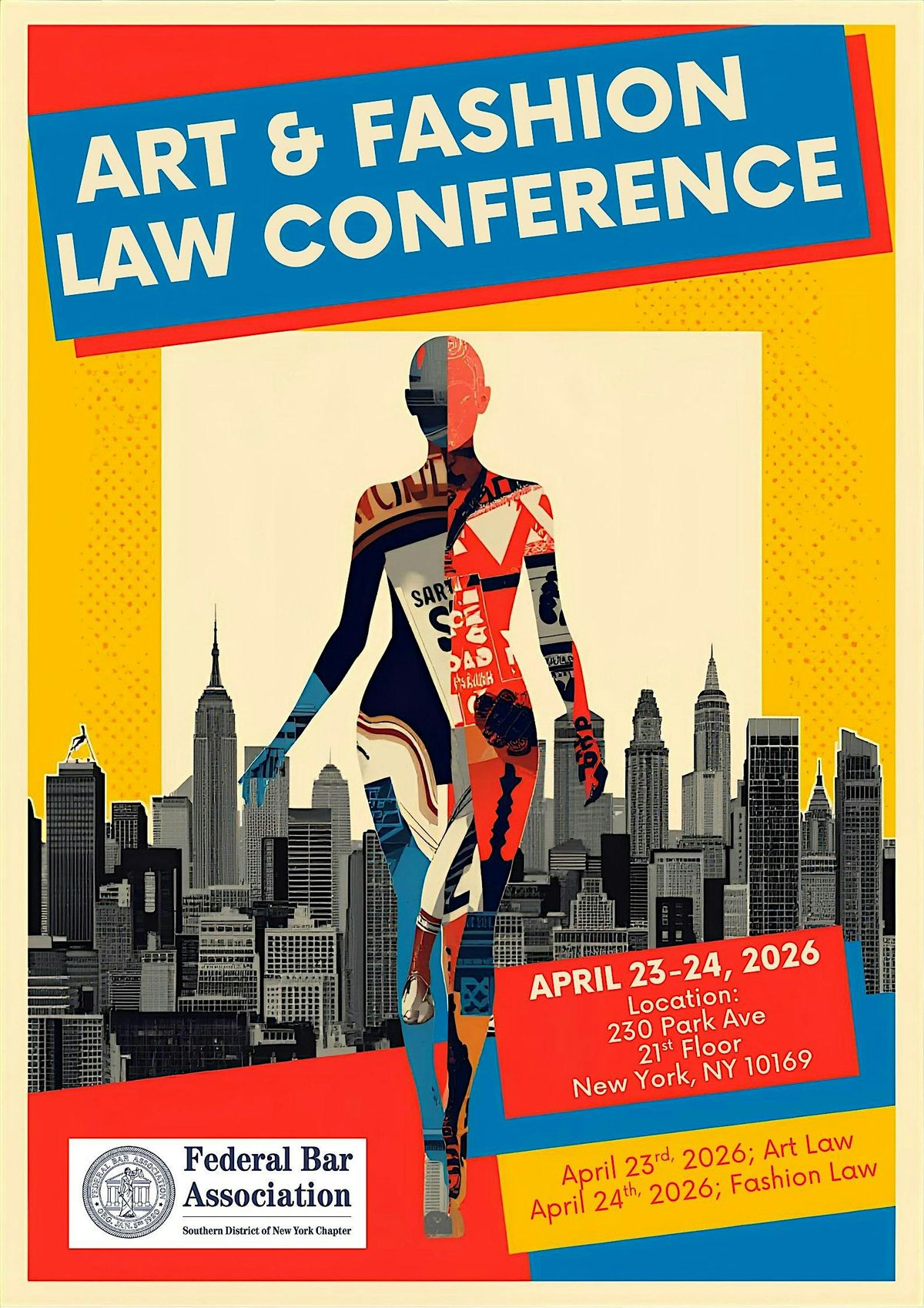 The Art & Fashion Law Conference joins two global industries in one compelling program. Experts in litigation, employment law, data privacy, intellectual property and product liability will collaborate in panels at the advanced and primer levels. The conference is designed for attorneys and non-attorneys who are interested in the intersection of art, fashion, and the law. Take advantage of the 5% off Early Bird rate by registering before March 20th, 2026. Single day and full conference registration tickets are available. Conference attendees will be invited to a cocktail reception on April 23rd 2026 - April 24th 2026 to mingle and network with conference faculty and fellow attendees. The conference is exclusively available in-person. There is no hybrid streaming available. Cosponsored by the Southern New York Chapter of the Federal Bar Association.