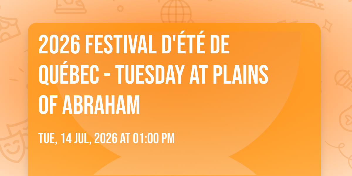 ✨ Discover the extraordinary at 2026 Festival d'été de Québec - Tuesday at Plains of Abraham, where magic meets reality in ways you've never imagined! 🏛️ Set in Plains of Abraham nestled in bustling Quebec, QC, this event promises to be a landmark occasion. 📅 Taking place on July 14th, 2026 at 01:00 PM, it's going to create an atmosphere where every moment becomes a cherished memory. 🌟 Immerse yourself in an experience crafted with attention to every detail, designed to surprise and delight at every turn. They have worked tirelessly to ensure this event exceeds all expectations, bringing together elements of entertainment, innovation, and pure joy. 🎊 Don't miss your chance to be part of this remarkable journey!