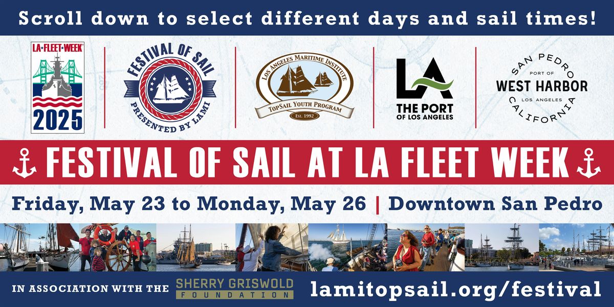 Join us for FOUR days of tall ship sailing fun on the LA Waterfront at the Festival of Sail at LA Fleet Week - Friday, May 22 through Monday, May 25.
