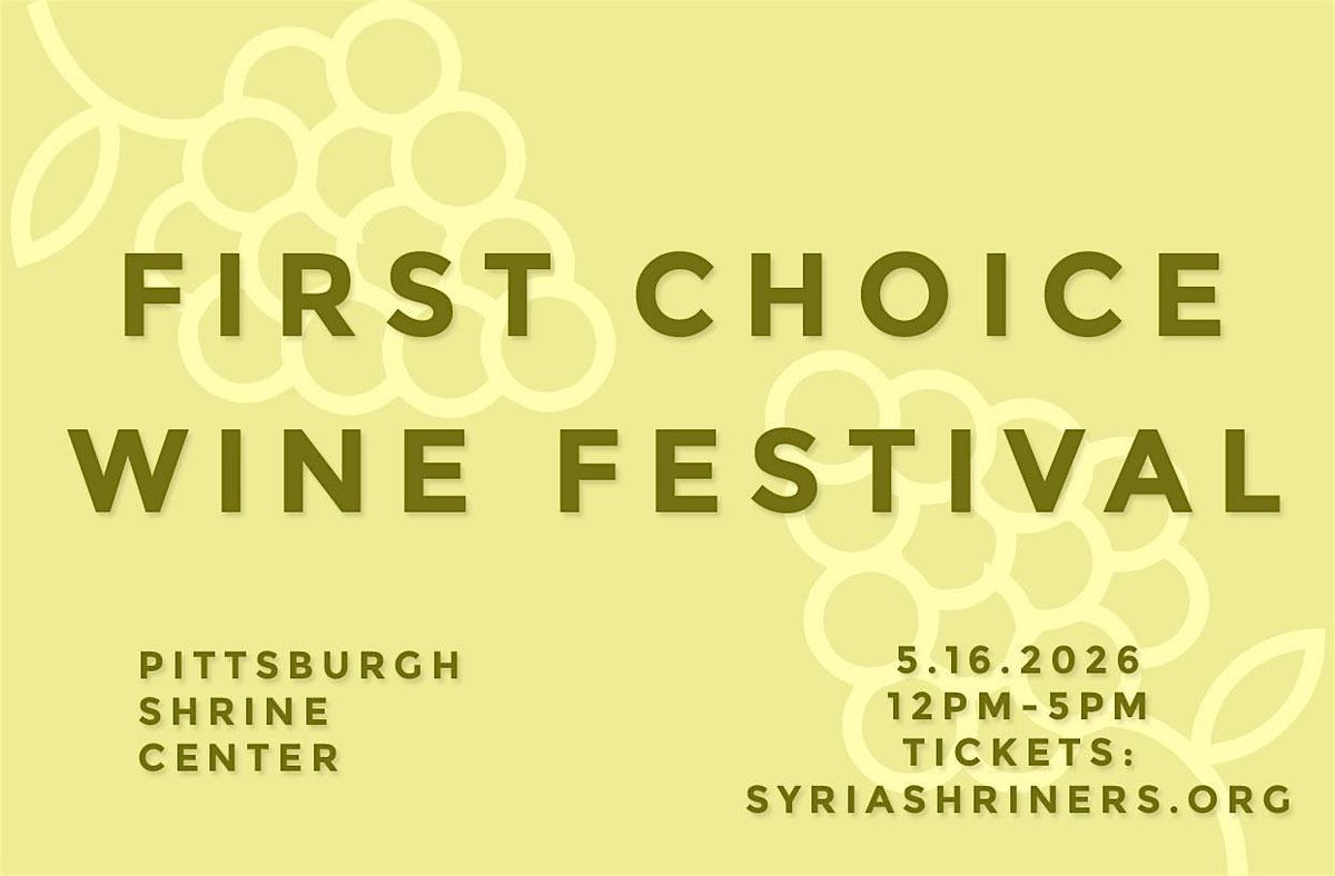 The Pittsburgh Shrine Center is excited to announce its 8th annual First Choice Wine Festival. Come and join us on Saturday, May 16th, 2026 from 12:00pm–5:00pm in the spacious outdoor Pittsburgh Shrine Center Pavilion.