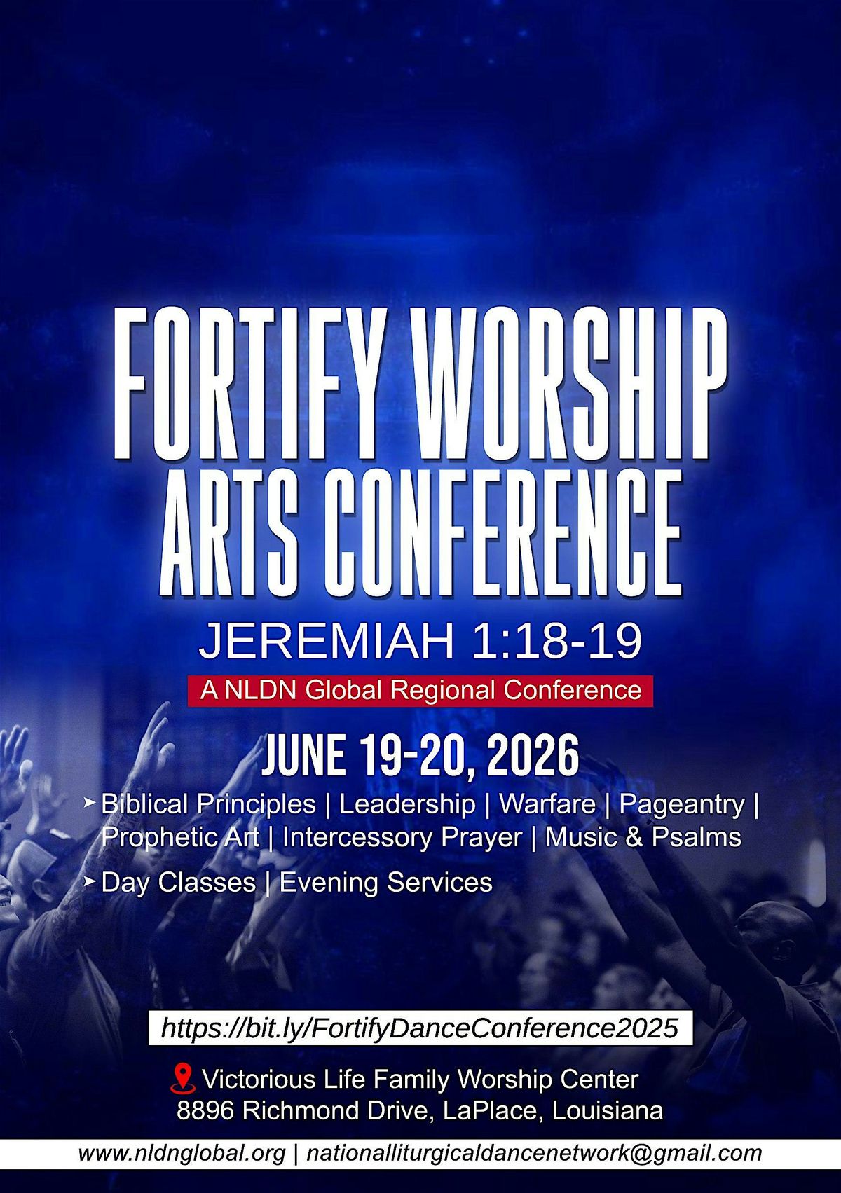 Join NLDN Global South Region Chapters for the Fortify Worship Arts Conference at Victorious Life Family Worship Center! This event is a must-attend for all worship leaders, musicians, singers, and anyone passionate about worship arts. Get ready for inspiring workshops, powerful worship sessions, and networking opportunities with fellow creatives. Don't miss out on this incredible chance to grow in your craft and connect with like-minded individuals. Mark your calendars and come ready to be empowered and inspired!