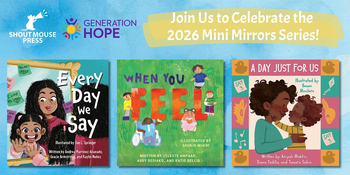Shout Mouse Press is thrilled to announce the launch of our second Mini Mirrors Series – board books for the youngest readers that celebrate diverse experiences, authored by student parents. These 2026 titles were authored by student parents enrolled in Generation Hope’s Scholar Program: Andrea Martinez Alverado, Celeste Ampaah, Gracie Armstrong, Abby Bediako, Katie Delcid, Aniyah Jhanae Martin, Raylin Nuñez, Diana Padilla, and Tamara Huzair Sahin. These young authors also had the guidance of early childhood education experts from Inspired Child.