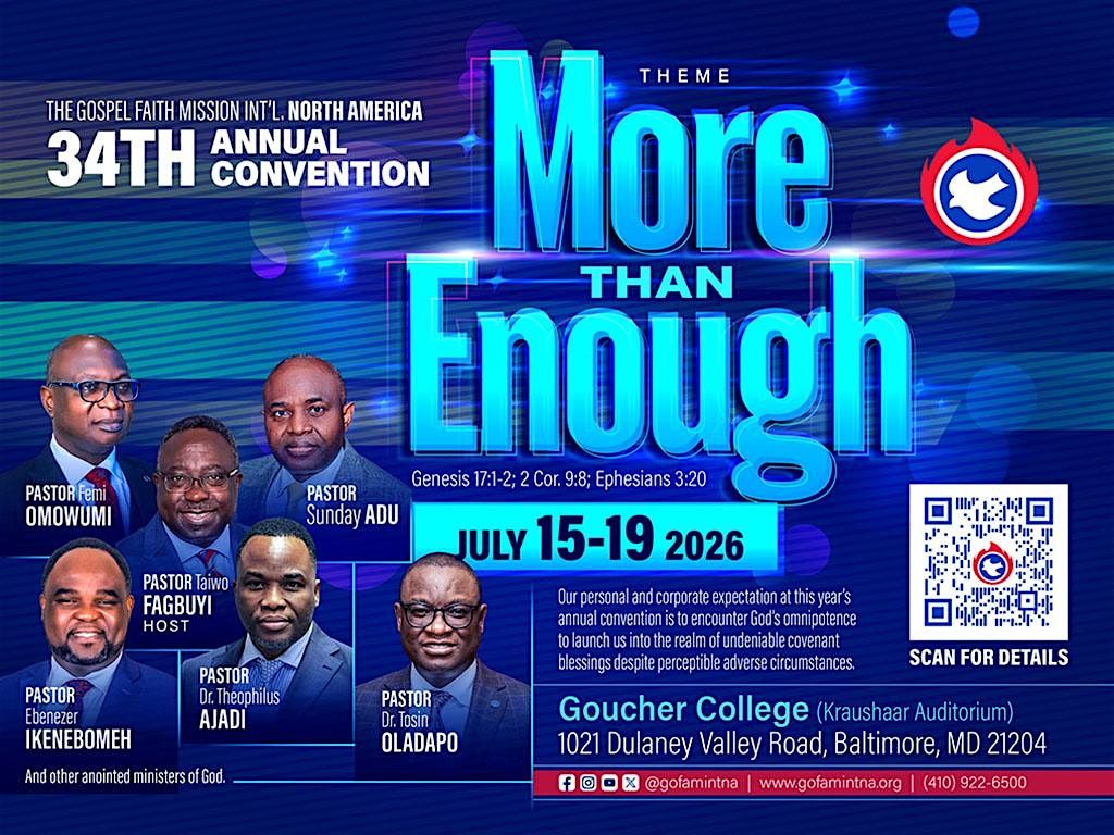 The 2026 Gospel Faith Mission International North America Annual Convention.Come expectant and experience the miraculous in every area.