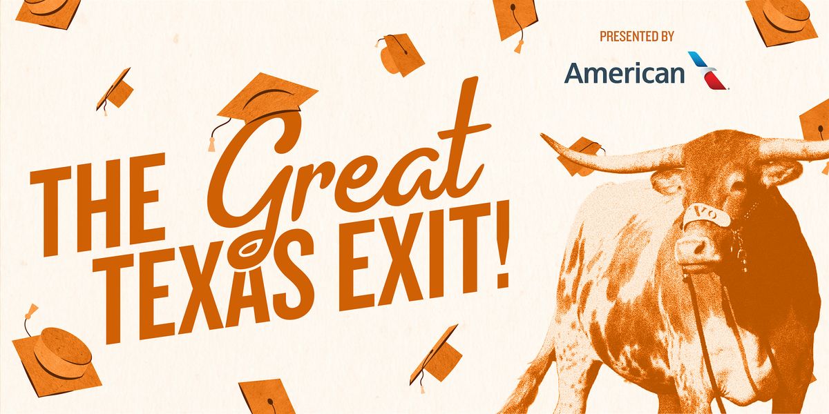 Cap off graduation weekend at the Great Texas Exit, presented by American Airlines. This casual, Texas-sized celebration, hosted by the Texas Exes, will be held from 4-6 p.m., Saturday, May 9.