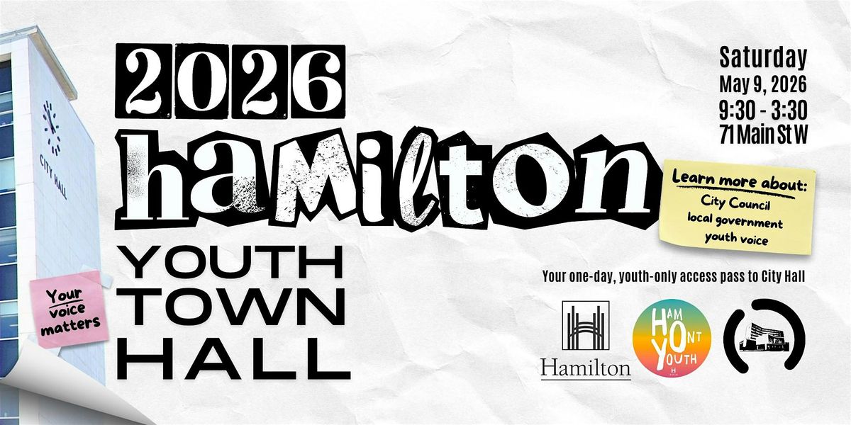 The 2026 Hamilton Youth Town Hall is scheduled to take place on Saturday, May 9, 2026, from 9:30 a.m. to 3:30 p.m. at Hamilton City Hall, and will convene youth aged 14–29 representing all City wards.