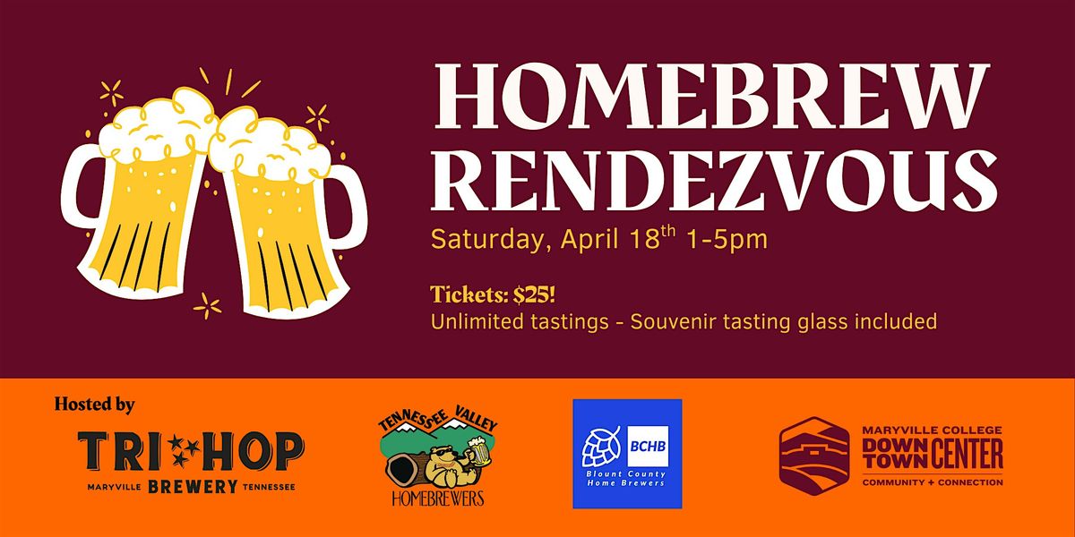 Join us for Homebrewers Rendezvous Saturday, April 18th from 1-5pm, hosted by Tri Hop Brewing Company and presented by the Blount County Homebrew Club and Tennessee Valley Homebrewers!