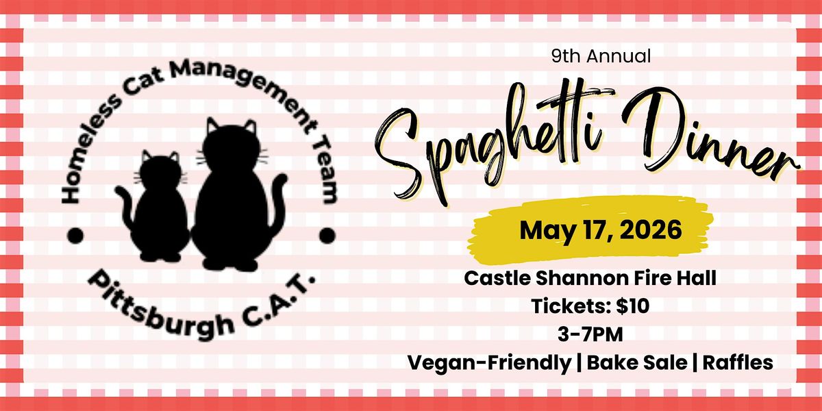 Come join us for a delicious spaghetti dinner at the Castle Shannon Fire Department! Enjoy an evening of good food and great company, all while supporting a purrrrfect cause. All proceeds from the event will go towards spaying/neutering/vaccinating community cats and getting cats ready for adoption!