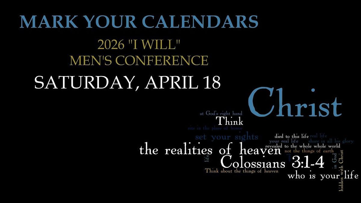 Welcome to the Ozark Family Church - 2026 "I WILL" Men's Conference! Join us for an exciting in-person event at our church where men from all walks of life come together to be inspired, encouraged, and equipped. Get ready as Aaron Pontious from Rejoice Church Columbia challenges us to step into our full potential as men of faith, boldness, and courage. This conference is all about growth, brotherhood, and taking action. Don't miss out on this opportunity to connect with other men and deepen your relationship with God.