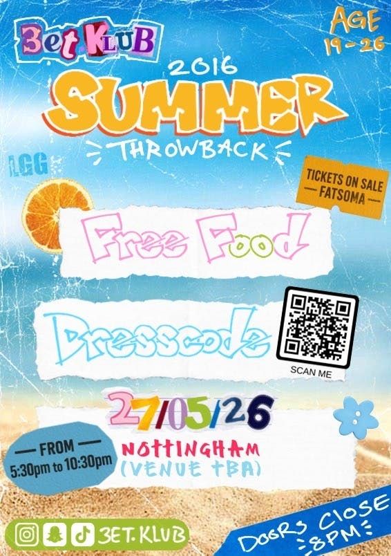 2016 Is The New 2026 ☀️ | Day Party Edition3ET.KLUB is bringing the midlands a 2016 Summer Themed Hall Party (with outdoor patio garden🫣)
