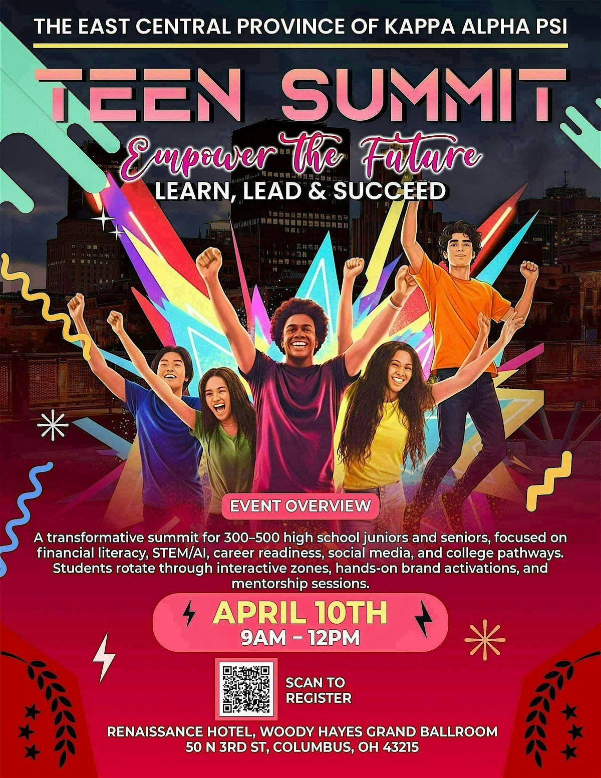 The 2026 Teen Summit, "Empower the Future: Learn, Lead, & Succeed" will be a transformative experience for 300–500 high school juniors and seniors, focused on financial literacy, STEM/AI, career readiness, social media, and college pathways. Students rotate through interactive zones, hands-on activations, and mentorship sessions.The summit will feature activities and talks in six zones: