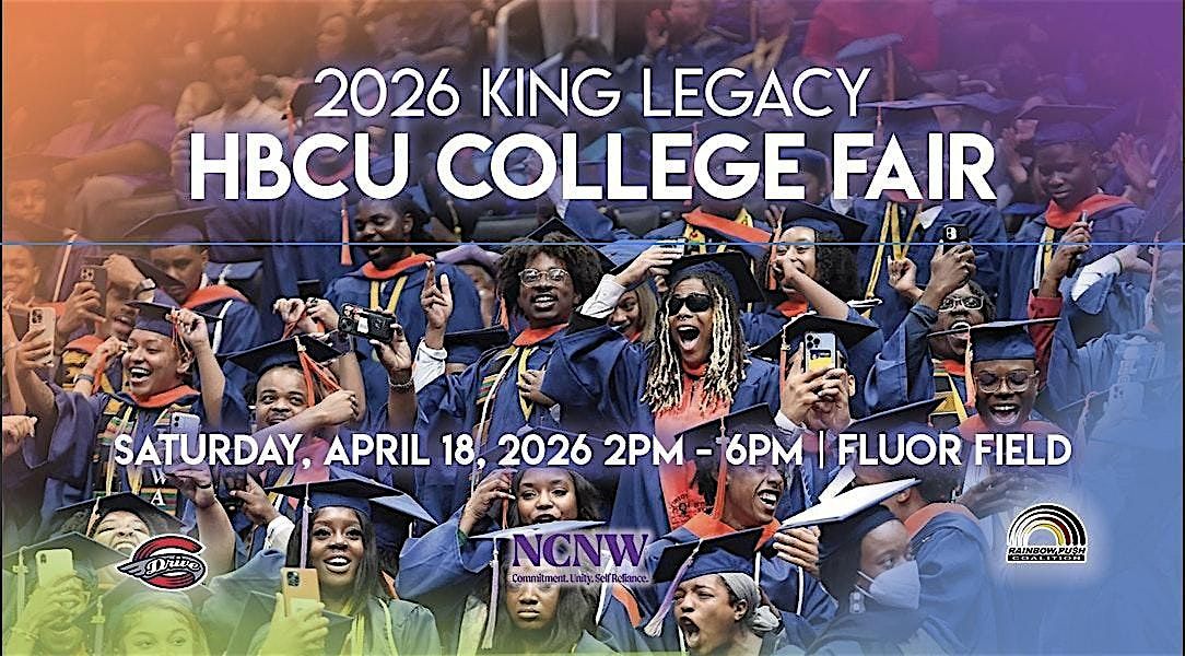 The 2026 King Legacy HBCU Fair will be held live on Saturday, April 18, 2026, 2:00 p.m. - 6:00 p.m., at Fluor Field, 945 South Main Street, Greenville, South Carolina. 30 Historically Black Colleges and Universities (HBCU) have been invited to make presentations, speak one-on-one to attendees, provide help with FAFSA, accept applications, and make admission and financial aid decisions onsite. Complimentary lunch, entertainment, and baseball game tickets will be provided for all participants.