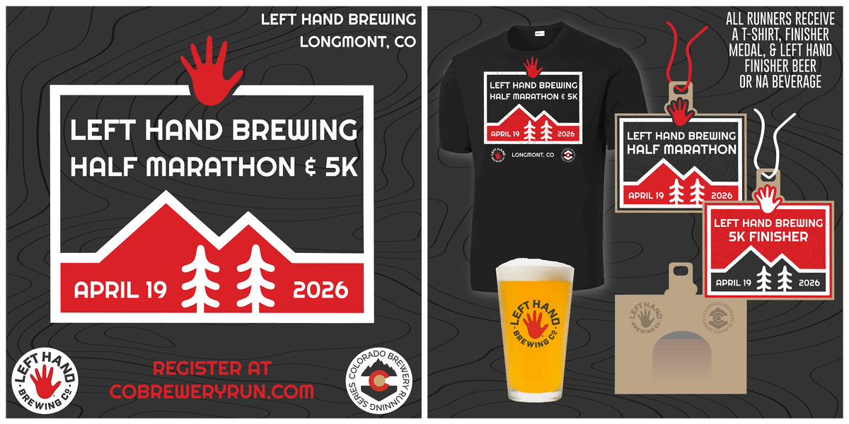 Join us for the Left Hand Half Marathon and 5k on Sunday, April 19, 2026. The course starts and ends at this awesome Longmont, Colorado brewery. The out-and-back course features a run that mostly follows the St. Vrain Greenway. There is also a 5k fun run option.