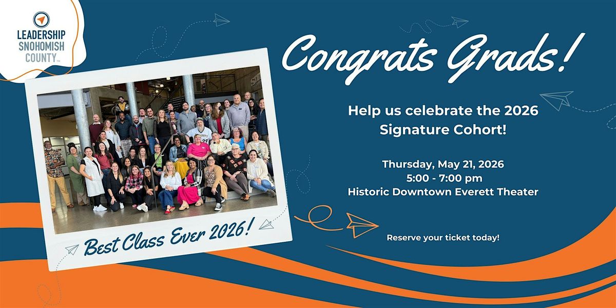 Join us in celebrating the successful completion of the 2026 Leadership Snohomish County Signature Program! This year’s Best Class Ever isn't just graduating—they're stepping forward as the next generation of community-minded leaders. Come honor their journey, their impact, and the leadership they'll continue to bring to Snohomish County and beyond.