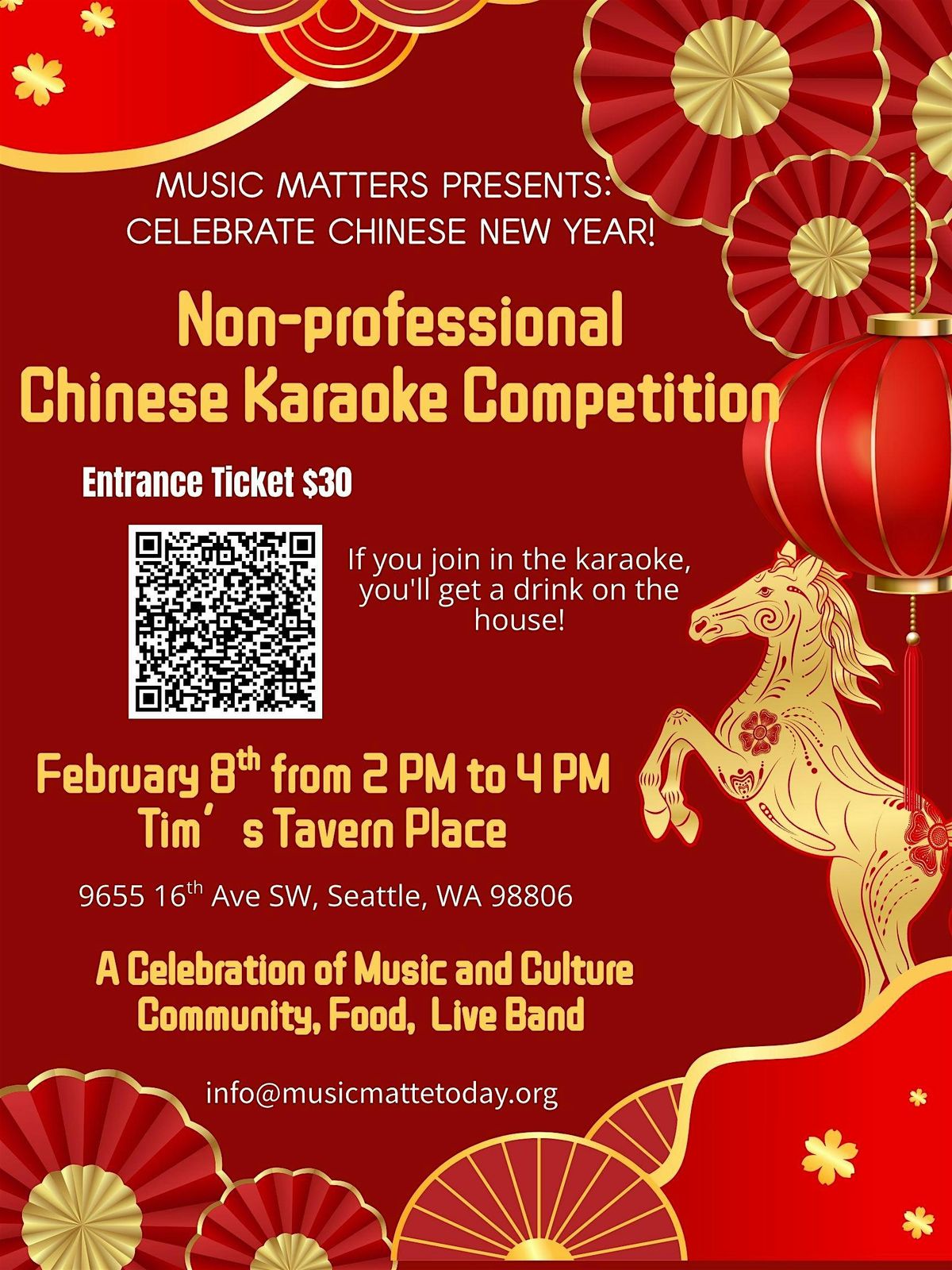 Celebrate the vibrant spirit of the Lunar New Year with Music Matters at our Karaoke Competition Gala! Hosted at Tim’s Tavern on February 8th from 2 PM to 4 PM. The event is open to people who enjoy singing, not professional singers.