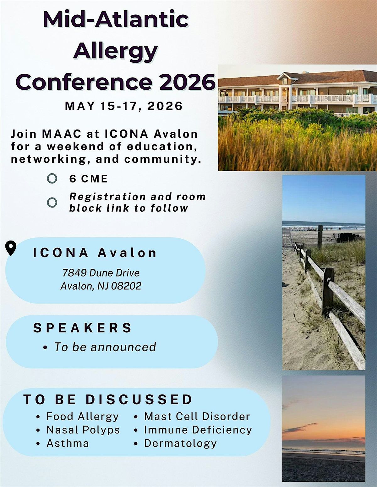 We are delighted to invite you to join us for the upcoming MAAC Meeting, taking place May 15–17 at the beautiful Iacona in Avalon, New Jersey.