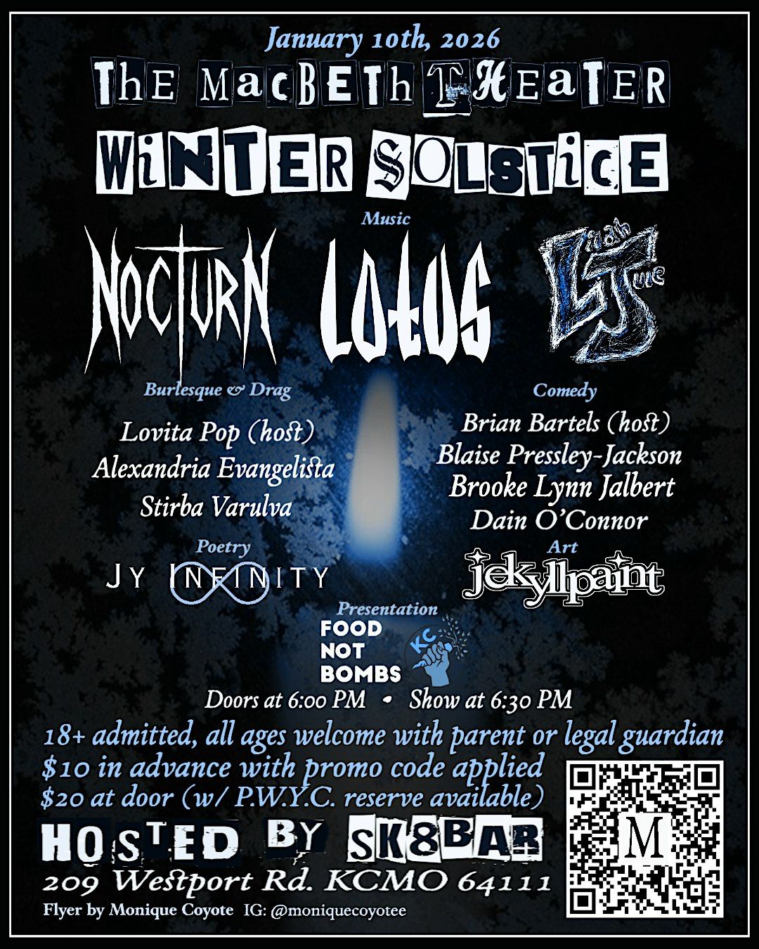 This year's Winter Solstice runs 3 hours and includes music, comedy, poetry, drag, burlesque, art and mutual aid. Let's build community!