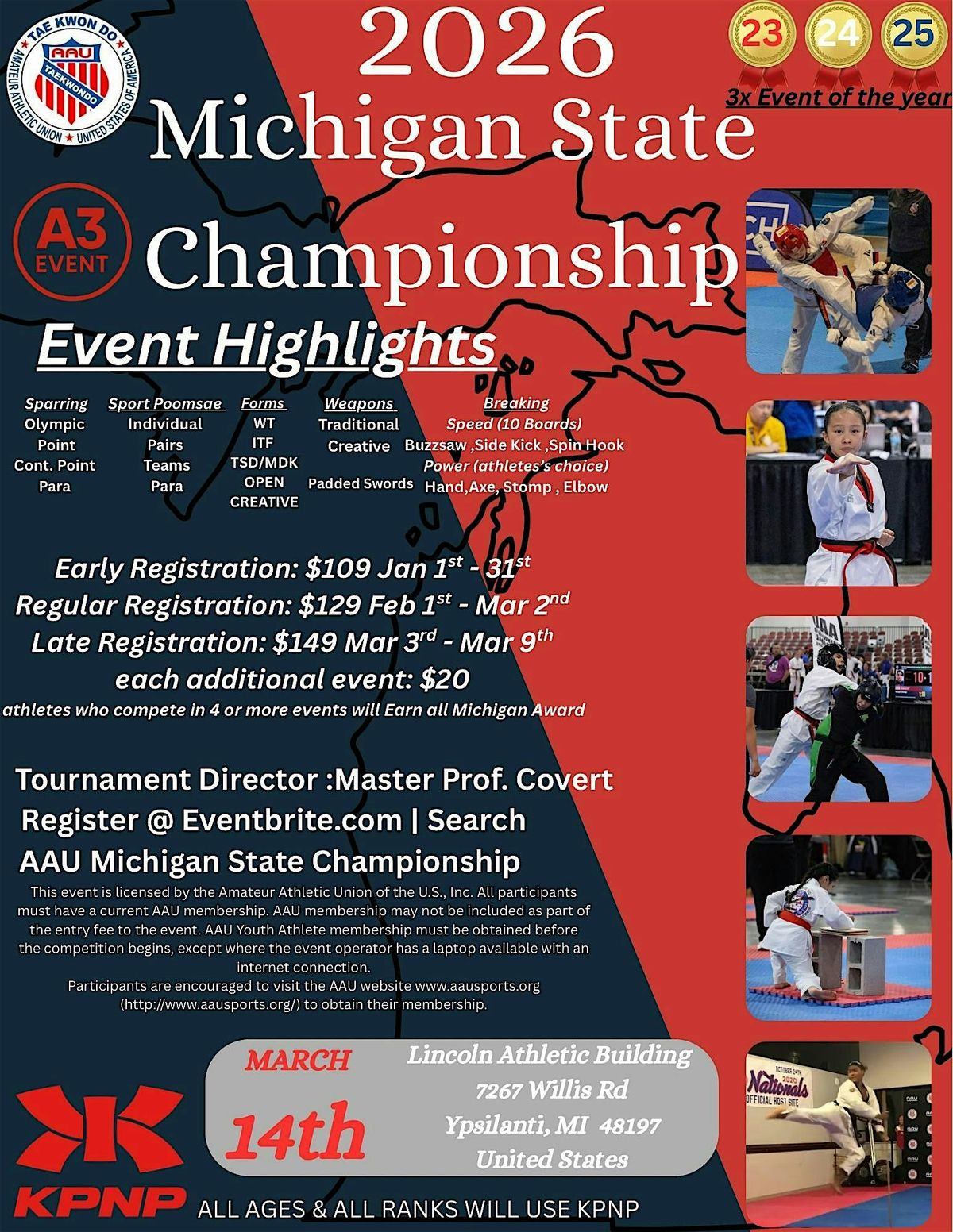 2025 Michigan AAU Tae Kwon Do State ChampionshipMust be a current AAU Member