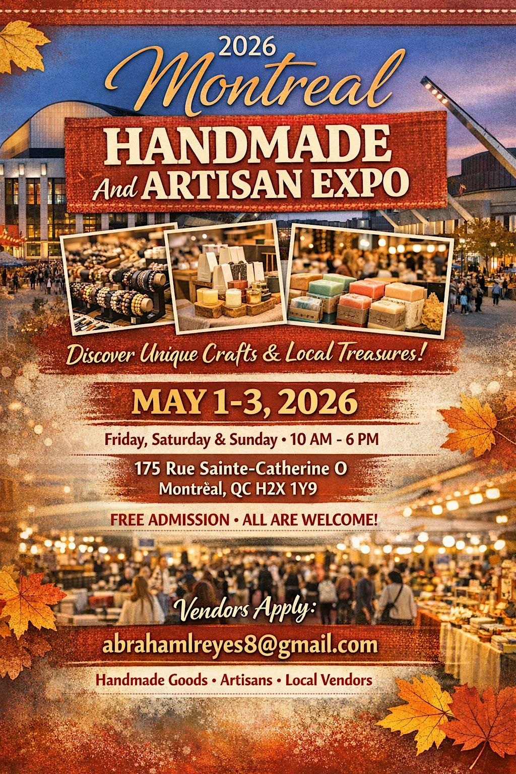 ✨ Join us for a fun and inspiring weekend at the 2026 Montreal Handmade And Artisan Expo, where local makers and artisans showcase their creativity and passion!