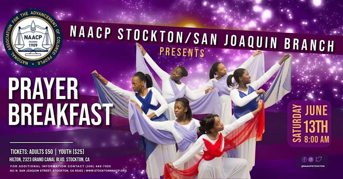Join us for the 2026 NAACP Stockton/San Joaquin County Branch Prayer Breakfast on Saturday, June 13th, at the Hilton Stockton (2323 Grand Canal Blvd., Stockton, CA).