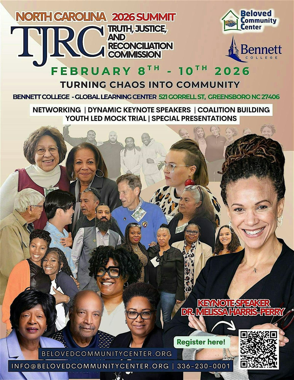 The Beloved Community Center of Greensboro will host the 2026 North Carolina Truth, Justice, and Reconciliation Summit (NC-TJRC Summit), taking place February 8–10, 2026, at the Global Learning Center at Bennett College in Greensboro, North Carolina.