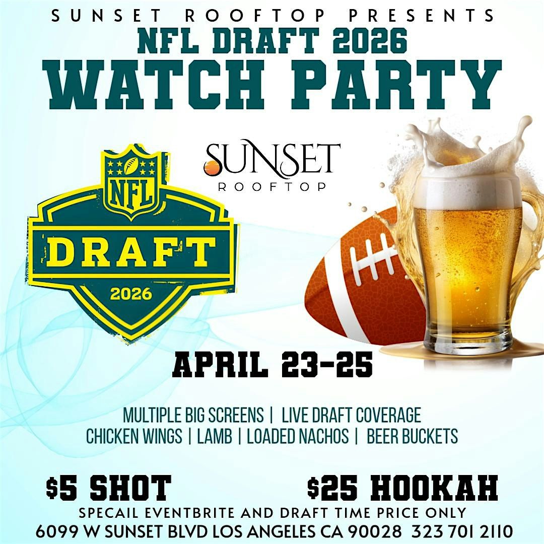Join us at Sunset Rooftop for a full weekend of NFL Draft action — live on our big screen TV with great vibes, great food, and exclusive Eventbrite‑only specials.