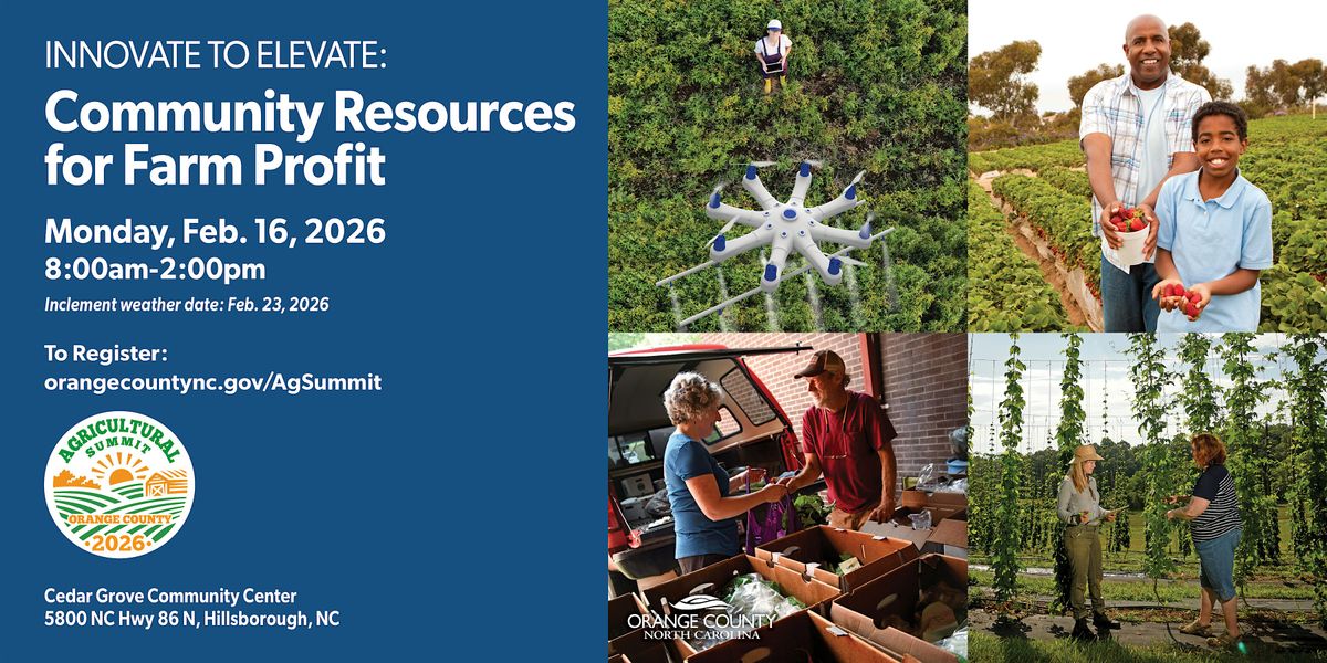 Agriculture remains the heartbeat of Orange County’s economy and culture. To support the entrepreneurs feeding our community and beyond, Orange County Government in partnership with the Orange County Center of North Carolina Cooperative Extension are proud to host the 2026 Agricultural Summit on Monday, February 16, at the Cedar Grove Community Center.