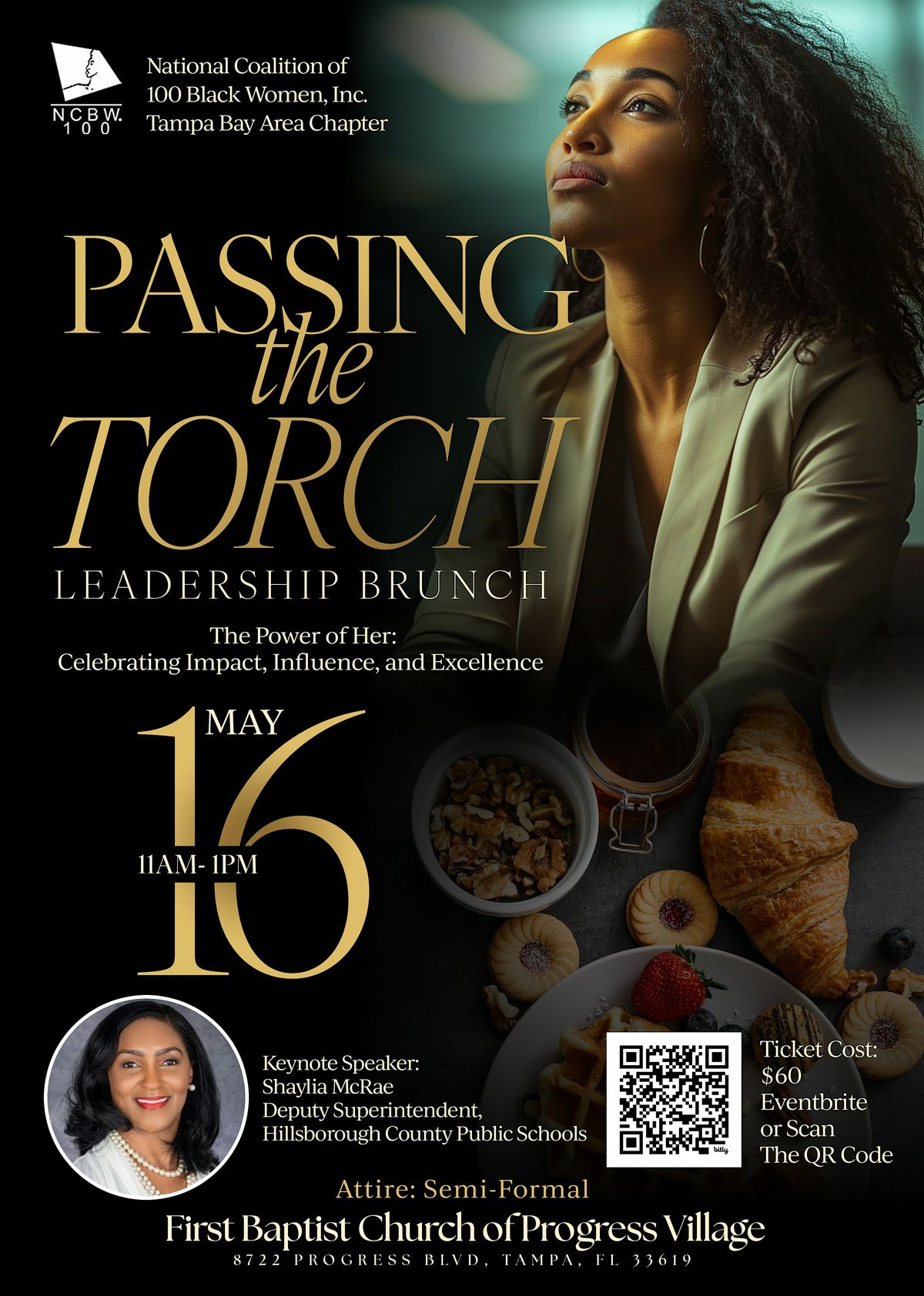 Join us at the First Baptist Church of Progress Village for our annual Passing the Torch Brunch, where we will celebrate African American women in the Tampa Bay area for their notable contributions in the areas of health, education, and economic empowerment. Get ready to connect and celebrate while indulging in a catered lunch. Don't miss out on this incredible opportunity to be inspired by all the wonderful accomplishments of our recipients. We look forward to seeing you there!
