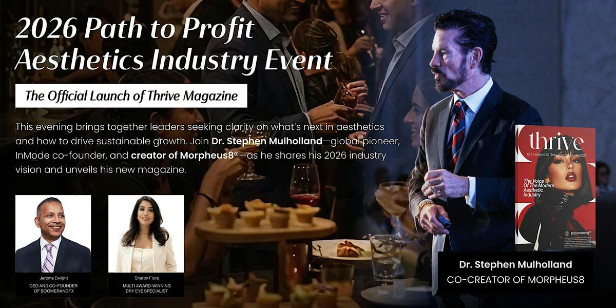 An invitation-only evening bringing together aesthetic practice owners, physicians, and industry leaders for insights on the future of aesthetics, profitability, and growth in 2026.