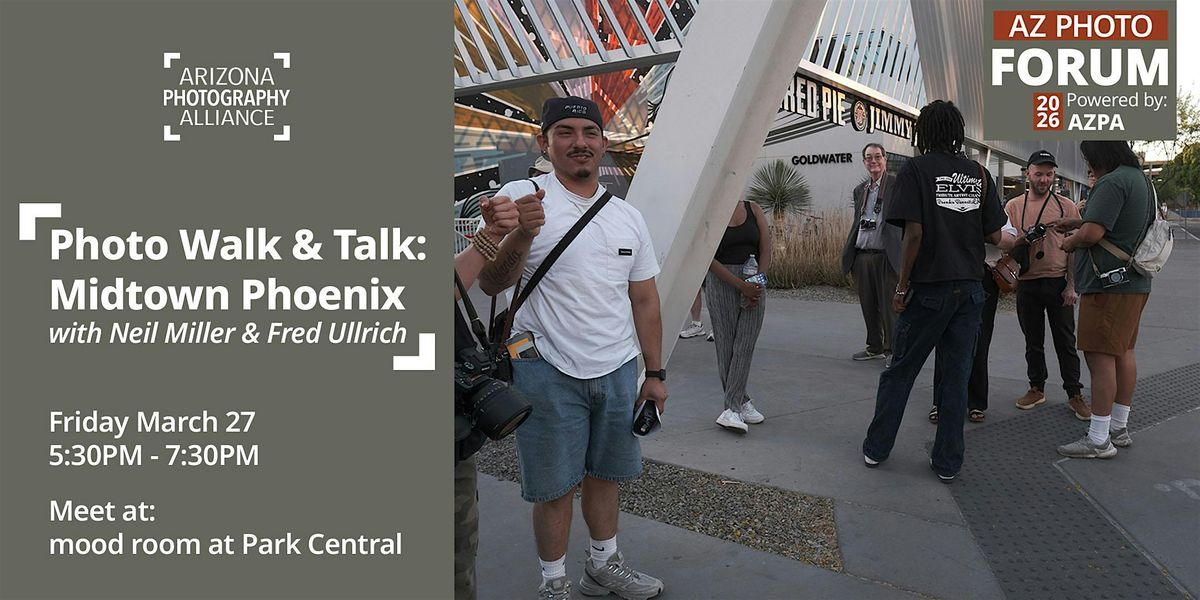 By registering for this event, you agree to hold harmless Arizona Photography Alliance (AZPA), its board, officers and members, and the event hosts, from any occurrence that might happen during the event. The views and opinions expressed by event hosts and/or presenters belong solely to those hosts and/or presenters and do not reflect any official policy or position of Arizona Photography Alliance, its board of directors, its members, or event volunteers.