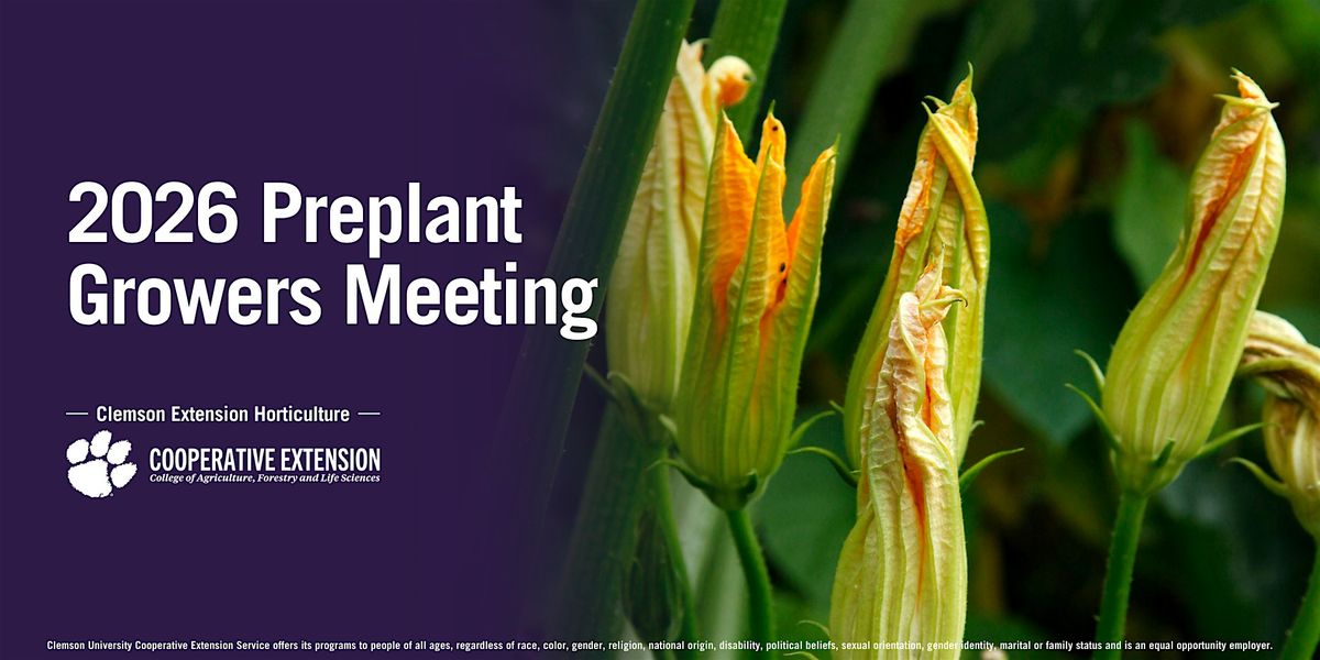 Commercial fruit and vegetable producers are invited to the Clemson Extension-led 2026 Preplant Growers Meeting. Topics include management of the yellow-margined leaf beetle, conservation easements, Clemson Extension updates, and Grower Trivia. Pesticide credits and a catered meal will be provided.