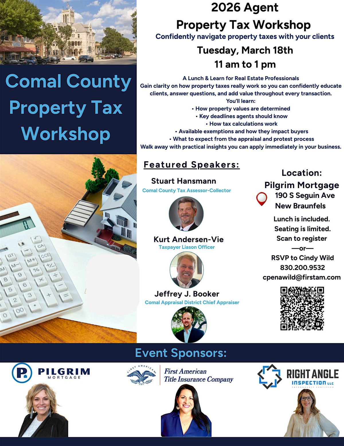 Agents, gain the clarity you need to confidently guide your clients through property taxes. Hear directly from the Comal County Tax Assessor-Collector, Chief Appraiser, and Taxpayer Liaison Officer as they break down valuations, exemptions, deadlines, and the protest process.