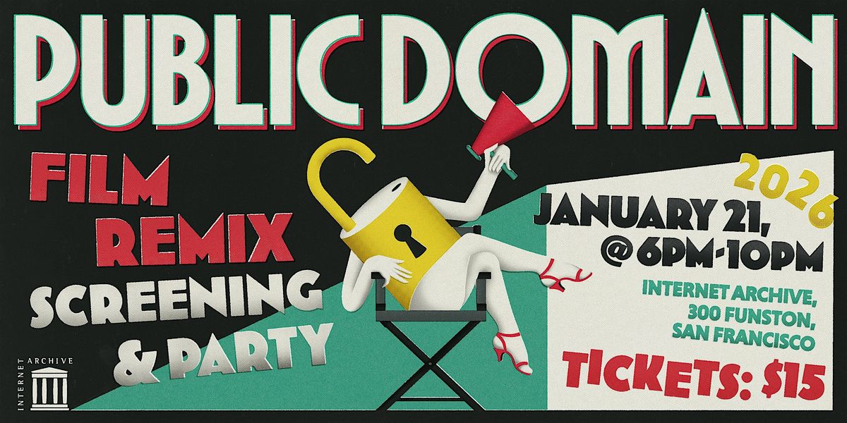 Join us at the Internet Archive for a glamorous night of film, fun, and public domain magic as we premiere the winning films and honorable mentions from this year’s Public Domain Day Film Remix Contest. Filmmakers were invited to remix the 1930 creative works and 1925 sound recordings entering the public domain in the United States in 2026— and they’ve transformed these newly freed creative works into something entirely their own.