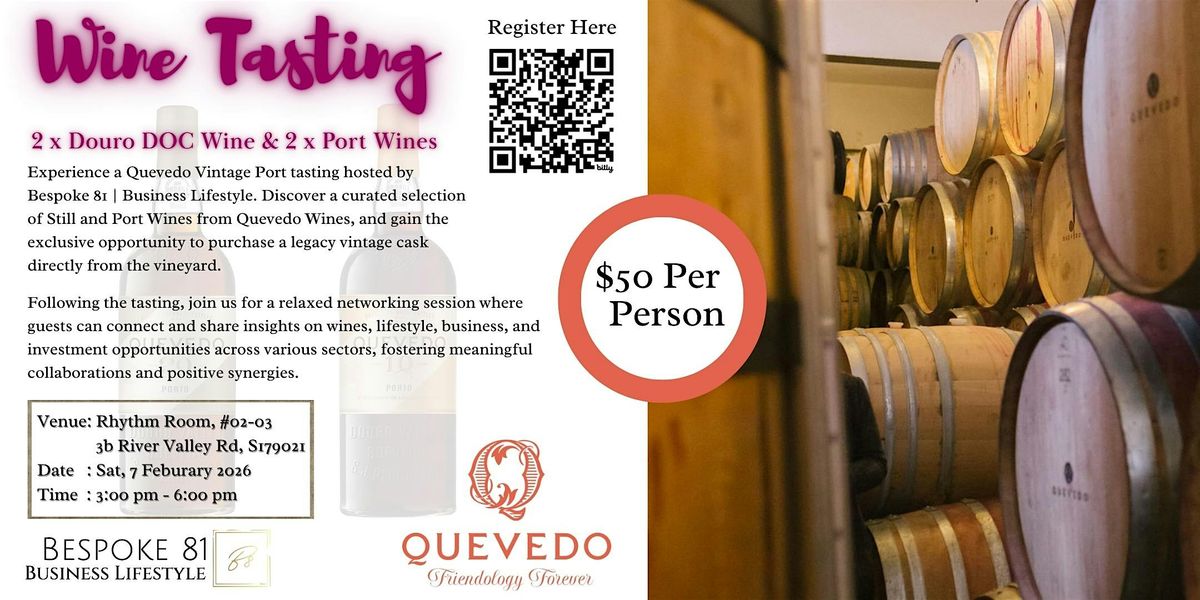 Join us for an exclusive Quevedo Vintage Port Tasting, presented by Bespoke 81 | Business Lifestyle. This unique event offers guests the chance to explore a distinguished lineup of Still and Port Wines from the renowned Quevedo Wines collection. Wine enthusiasts and newcomers alike will have the rare opportunity to purchase a legacy vintage cask, sourced directly from the vineyard.