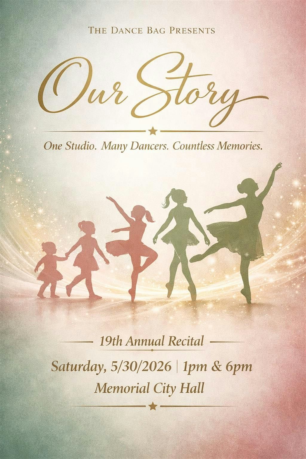 The Dance Bag proudly presents our 19th Annual Recital, "Our Story". Join us as we celebrate the memories, friendships, and moments that make our studio so special.