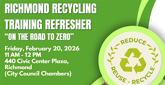Join the City of Richmond, CA and Republic Services to learn about properly sorting waste, state and local laws, and exploring available recycling resources. This informative session is open to all ages and is a great opportunity for City Staff and the Richmond Community to enhance their recycling and sustainability knowledge. In-person attendees will receive FREE Zero Waste gear and food!