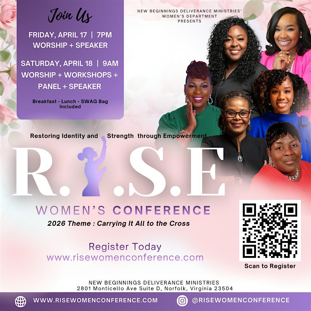 Info: Friday night is the kickoff to the Women’s R.I.S.E. Conference and we’re starting strong. Join us for an unforgettable evening filled with powerful worship and a dynamic speaker who will set the atmosphere for the entire weekend. This night is all about arriving, releasing, and getting your heart ready for what God wants to do. Come expecting breakthrough, encouragement, and a fresh fire to rise above what you’ve been carrying. Bring a friend, grab your seat, and start your RISE weekend the right way.