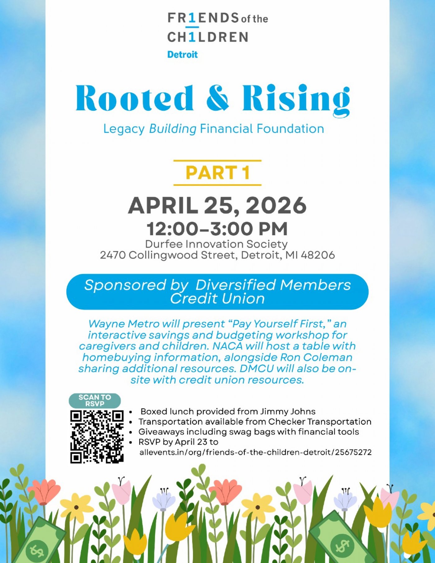 Hosted by Friends of the Children Detroit, this interactive program helps the whole family learn financial empowerment through expert-led workshops on budgeting, homebuying, and credit resources. Join us for a day of learning, growth, and community support.