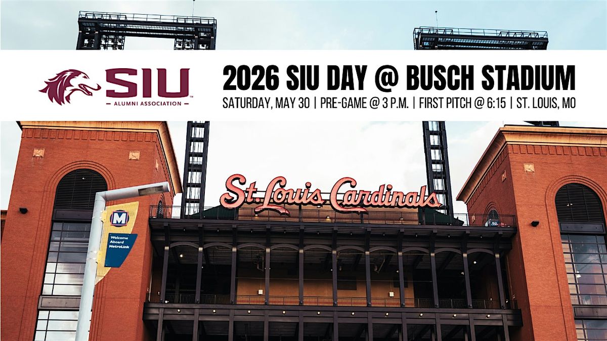 The SIU Alumni Association invites you to attend the annual gathering of Salukis at the 2026 SIU Day at Busch Stadium on Saturday, May 30. As always, this year's event features the St. Louis Cardinals against the Chicago Cubs. First pitch is at 6:15 p.m.