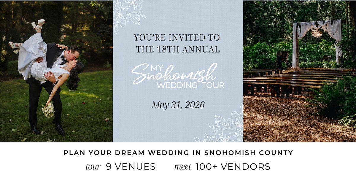 Embark on your wedding planning journey at the 18th Annual Snohomish Wedding Tour on Sunday, May 31st. Discover the charm of 9 stunning Snohomish venues and connect with more than 100 premier wedding professionals.