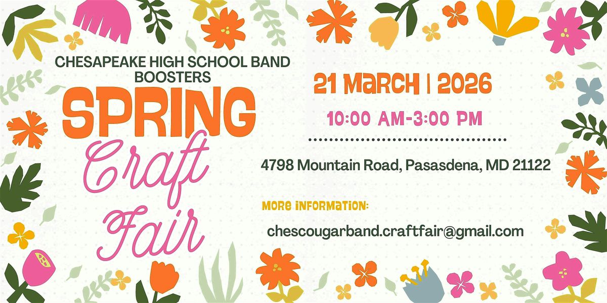 Chesapeake High School Band Boosters will host its annual Spring Craft Fair on March 21, 2026. The Fair brings in more than 270 local artisans, handmade goods, and unique gifts!