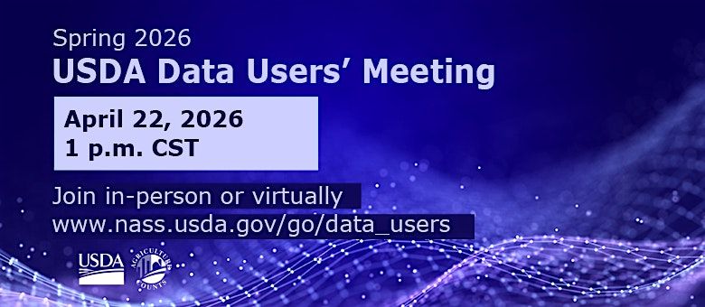 Info: The Data Users’ Meeting is held to share recent and pending statistical program changes with the public and to solicit input on these and other programs important to agriculture. This year, the meeting will be held at the Federal Reserve Bank of Kansas City located at 1 Memorial Drive , Kansas City, MO 64198. The event is organized by NASS in cooperation with the World Agricultural Outlook Board (WAOB), Farm Service Agency (FSA), Economic Research Service (ERS), Agricultural Marketing Service (AMS), Foreign Agricultural Service (FAS) and U.S. Census Bureau. The U.S. Energy Information Administration are also on hand to assist with topics as needed.