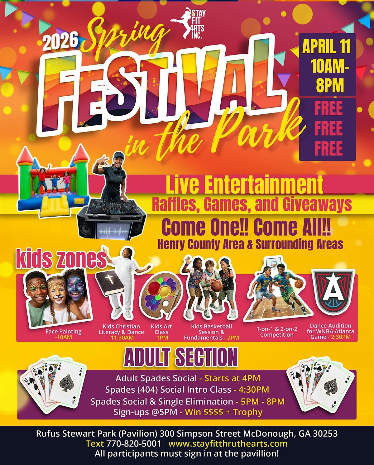 Kids Zone (Art, Facepainting, Bouncehouse, Entertainment, Basketball Fundamentals session, 1on1 and 2on2 competition, and dance audition for the WNBA game at States Farm Arena!!