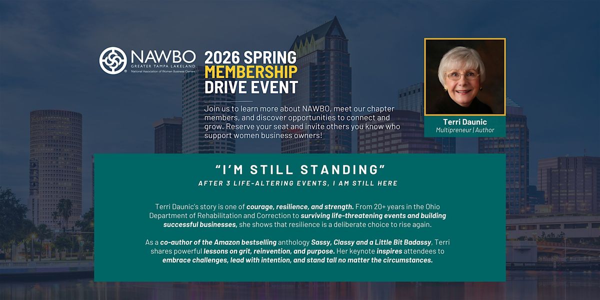 Step into spring with purpose at our 2026 Spring Membership Drive Event! Join us and discover how NAWBO is supporting and advancing women entrepreneurs and business owners across Tampa Bay. Learn about membership opportunities, national and international events, and meaningful opportunities to grow your business, expand your network, and step into leadership. Whether you're new or already part of our community, we look forward to welcoming you! We're kicking off the spring season with fresh energy and connections!